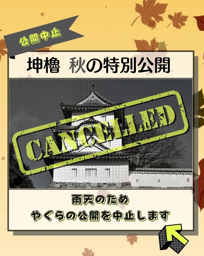 2025年11月9日(日曜日)は、雨天予報のため坤櫓 秋の特別公開を中止いたします。